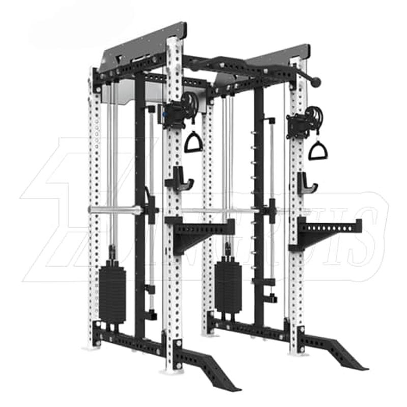 Tämä All-in-One Power Rack ja Cable Crossover+Smith on kuntolaitteiden integroinnin ehdoton ilmentymä, joka yhdistää saumattomasti kolme peruselementtiä.